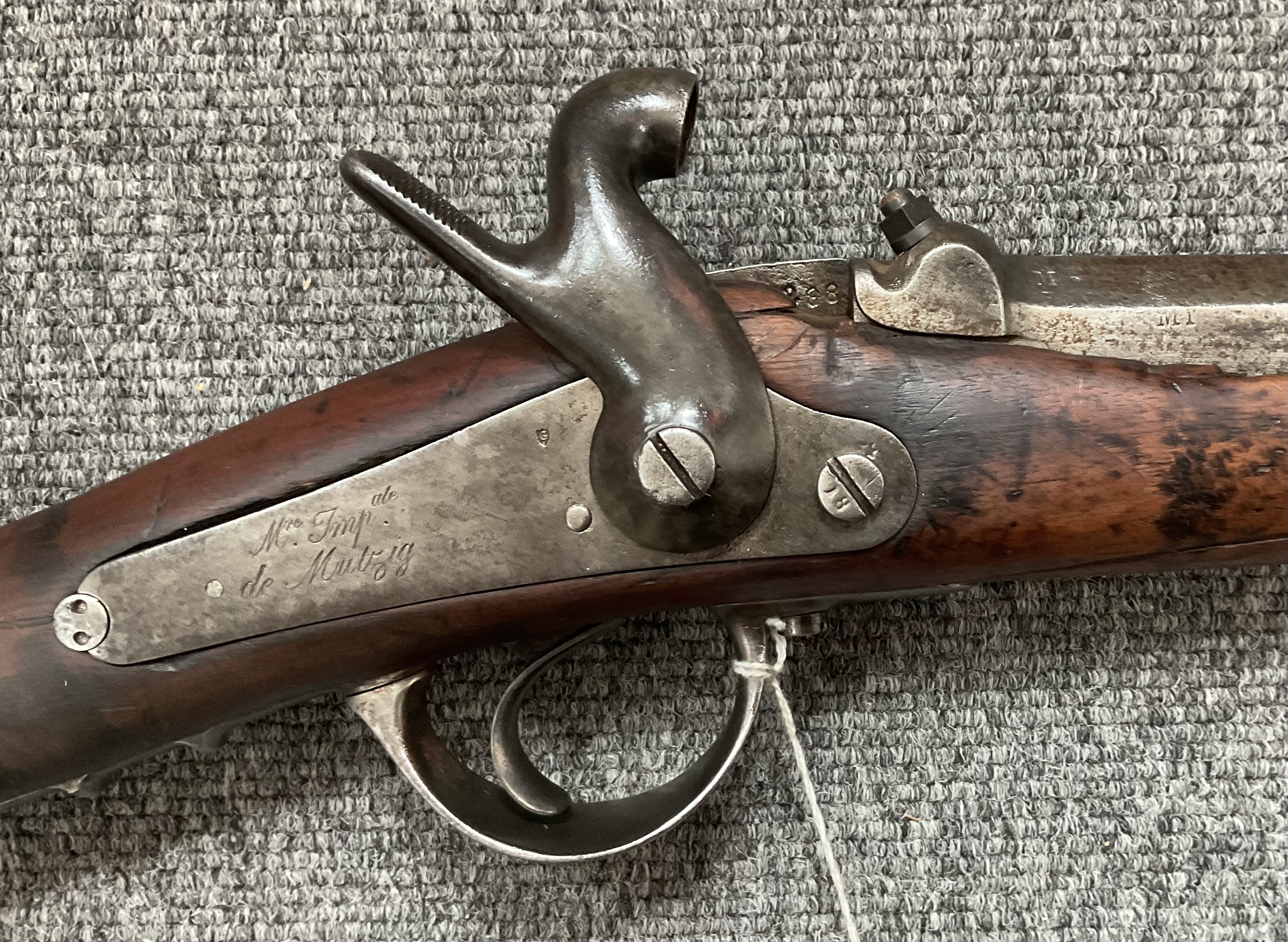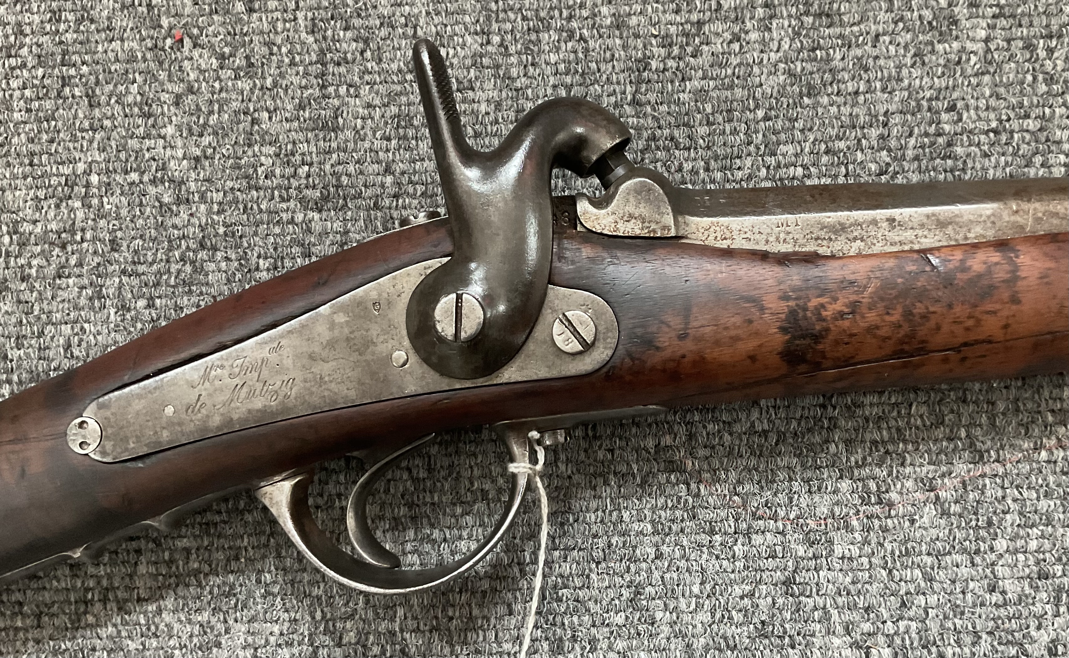 34-inch smooth bored barrel. Locked engraved: 'Mre. Imp ale de Mutzig'.