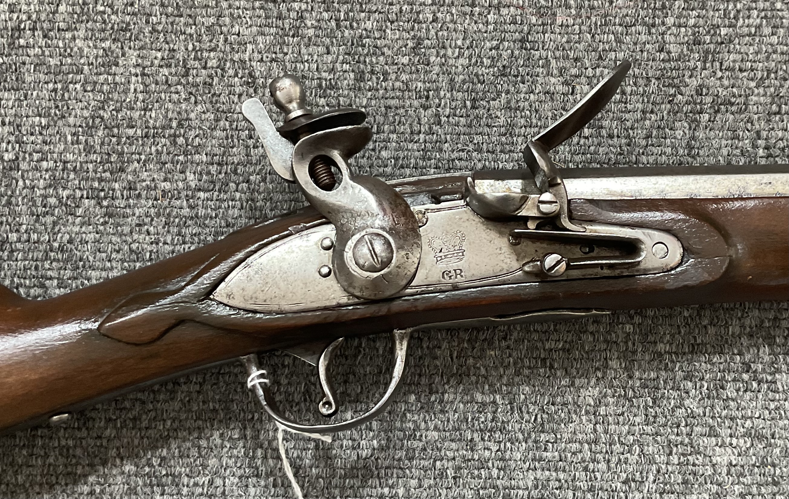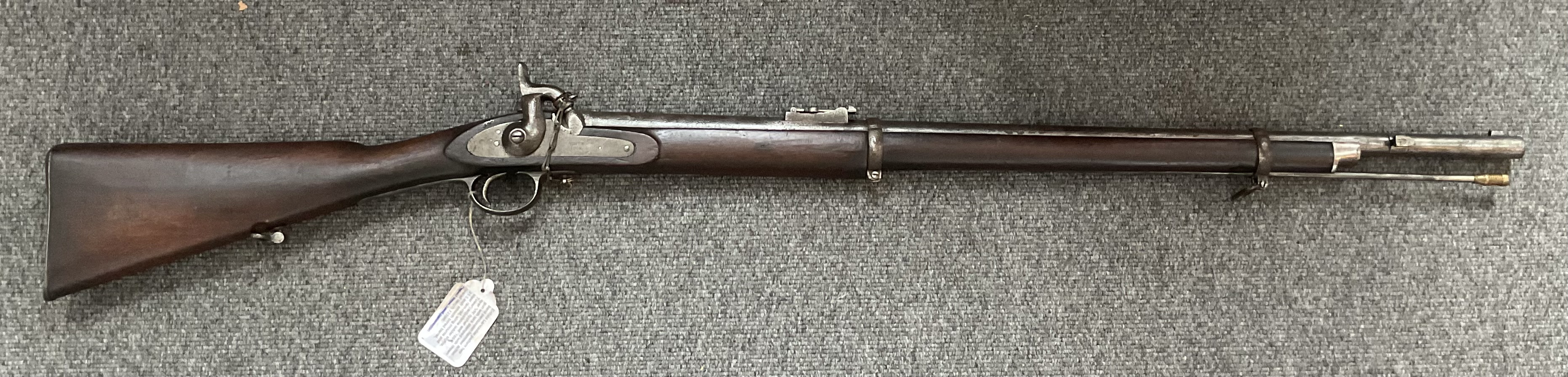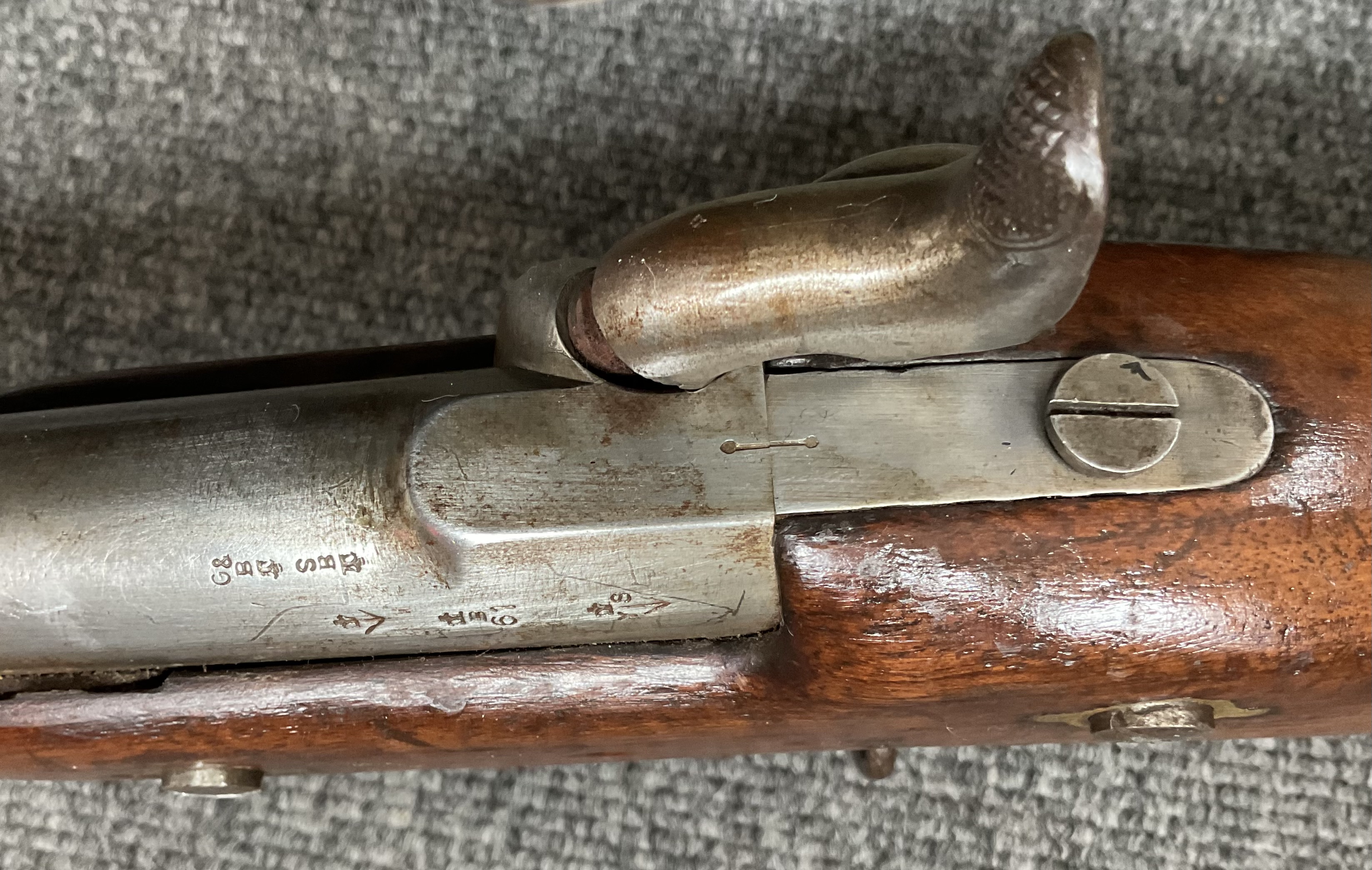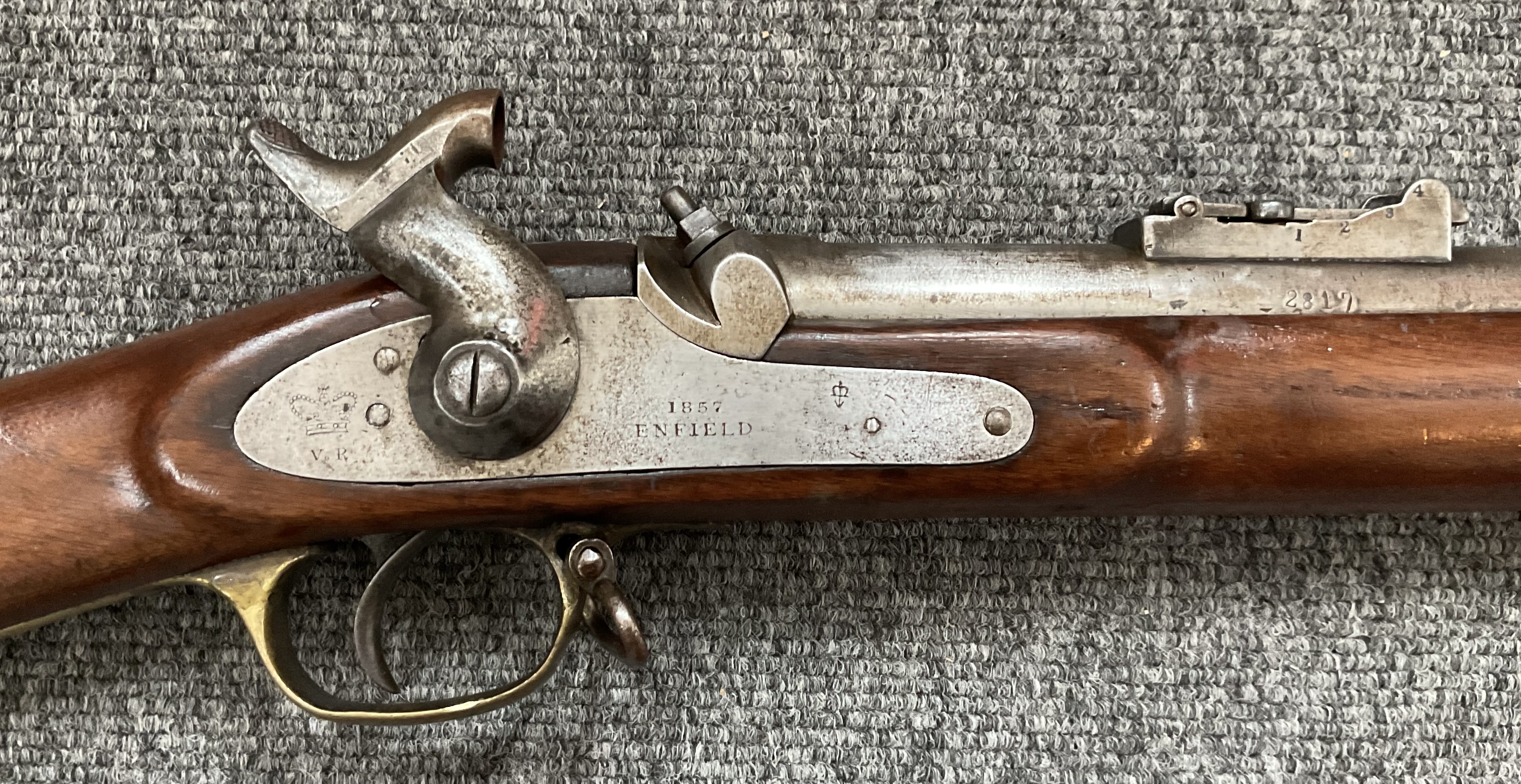 39-inch smooth bored barrel. Lock engraved with crown over VR and 1857