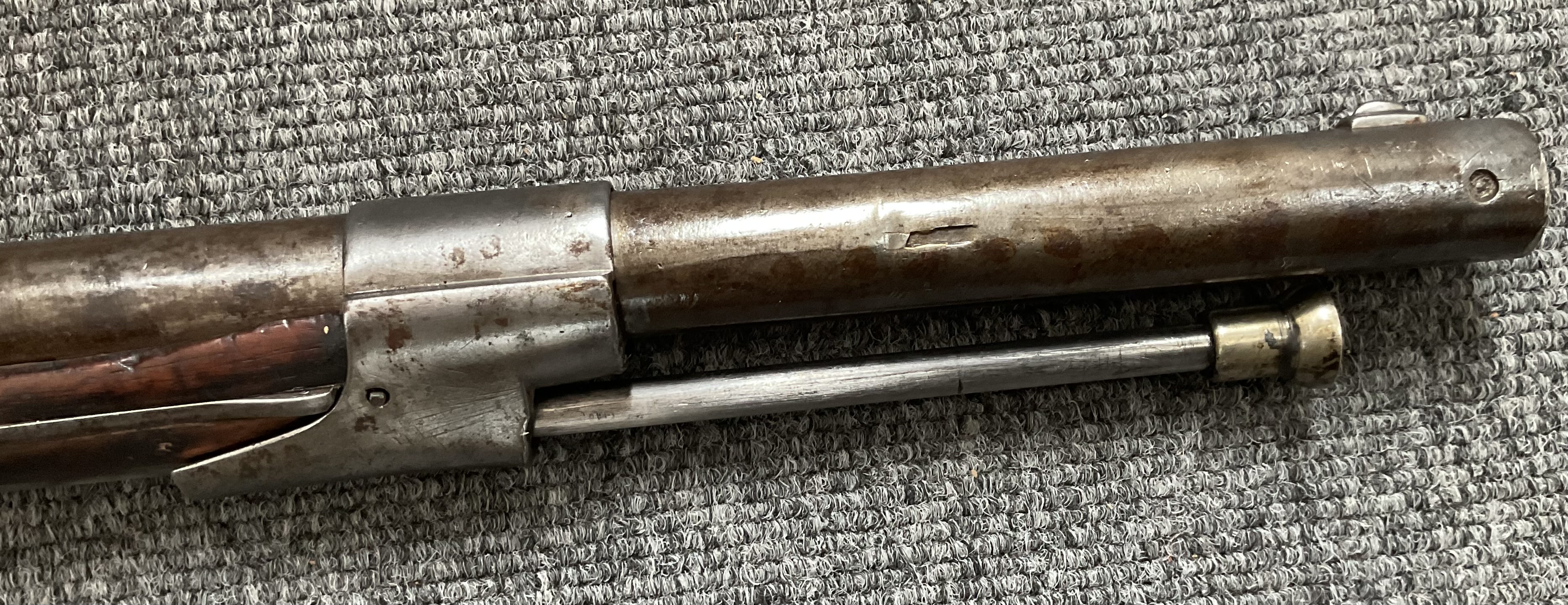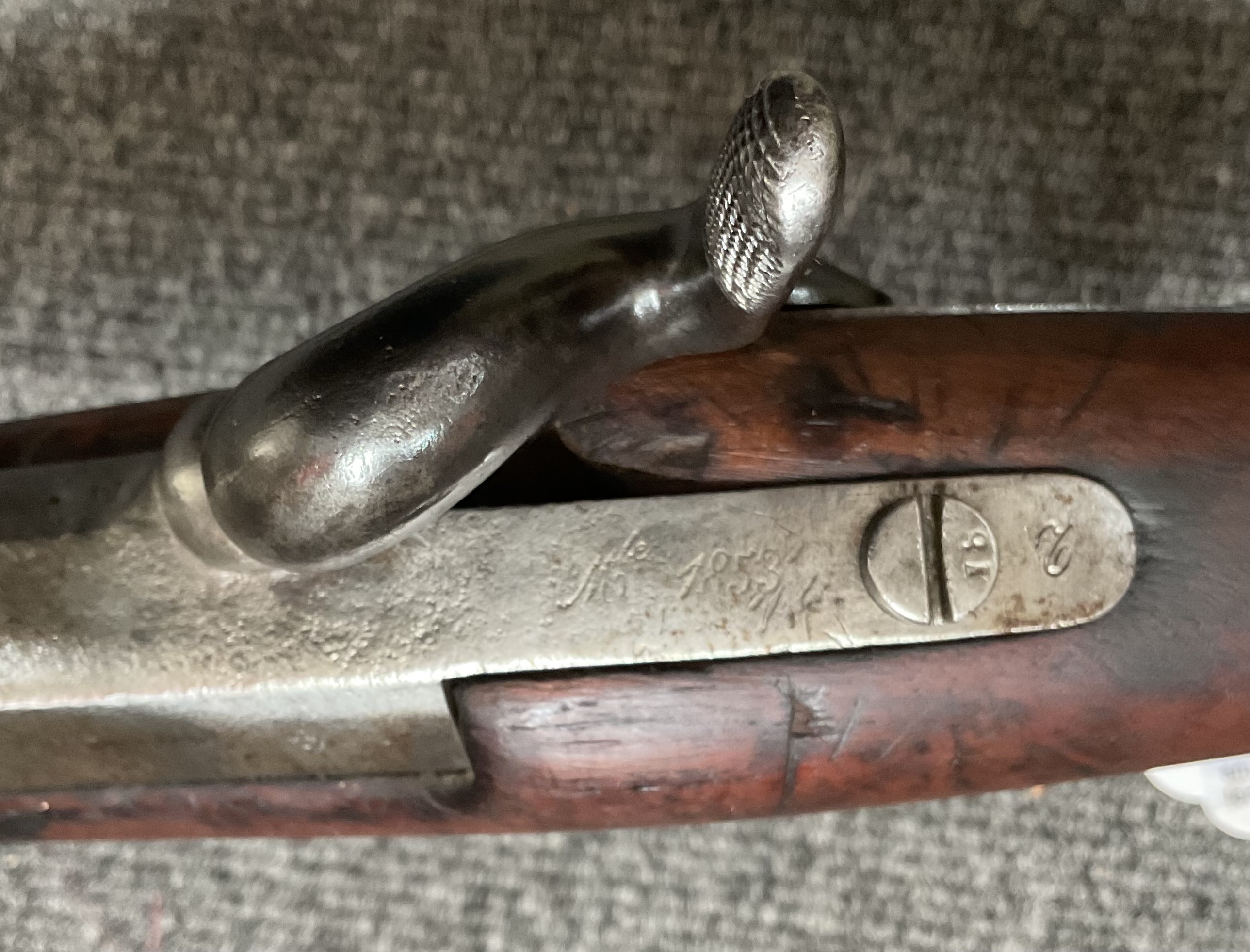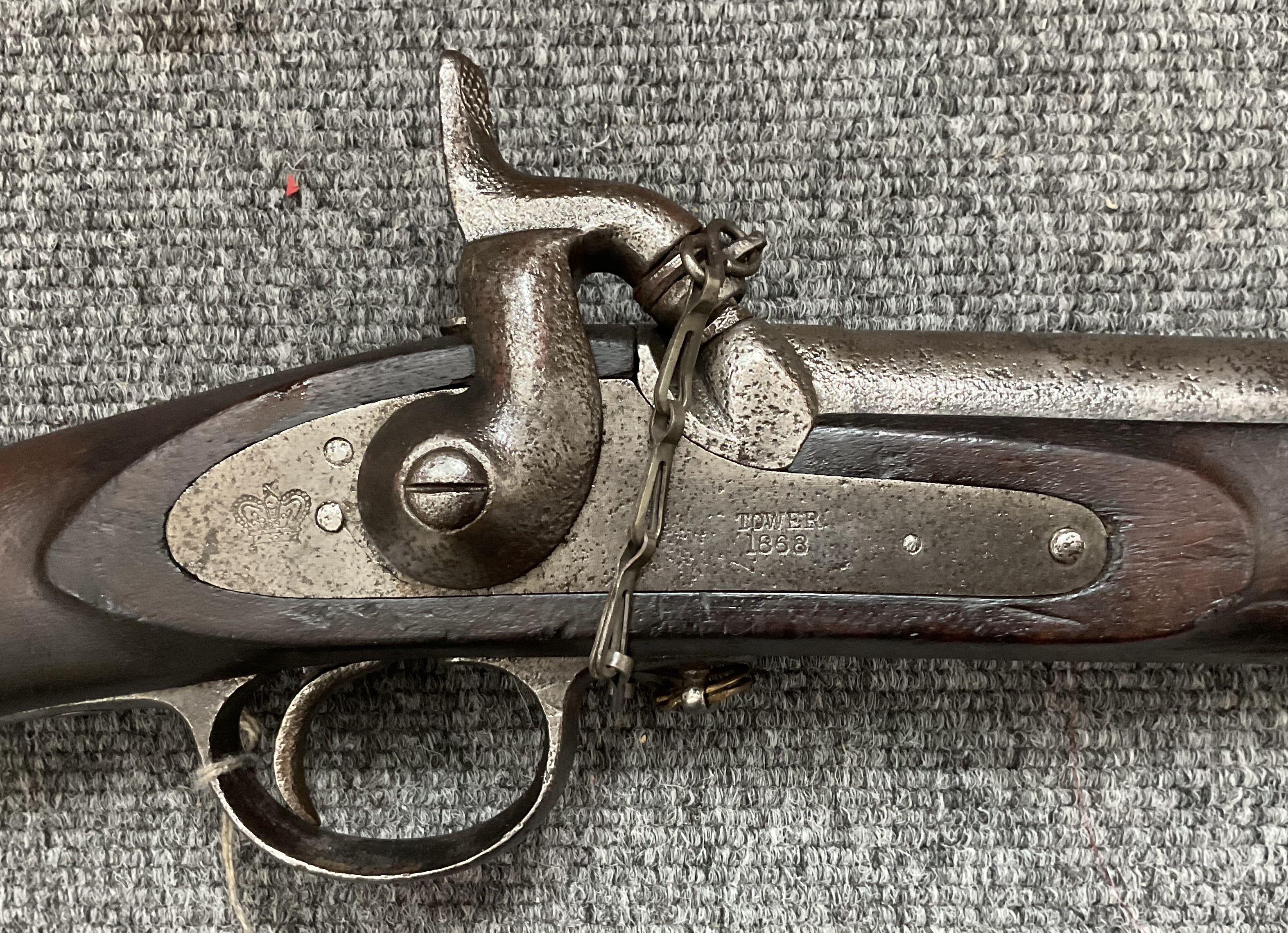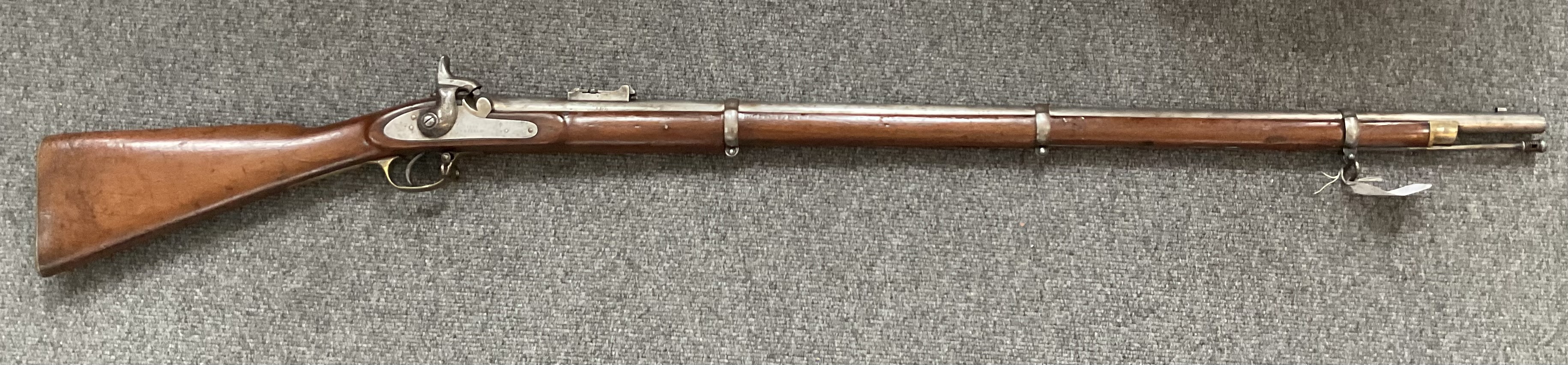 39-inch smooth bored barrel. Lock engraved with crown over VR and 1857