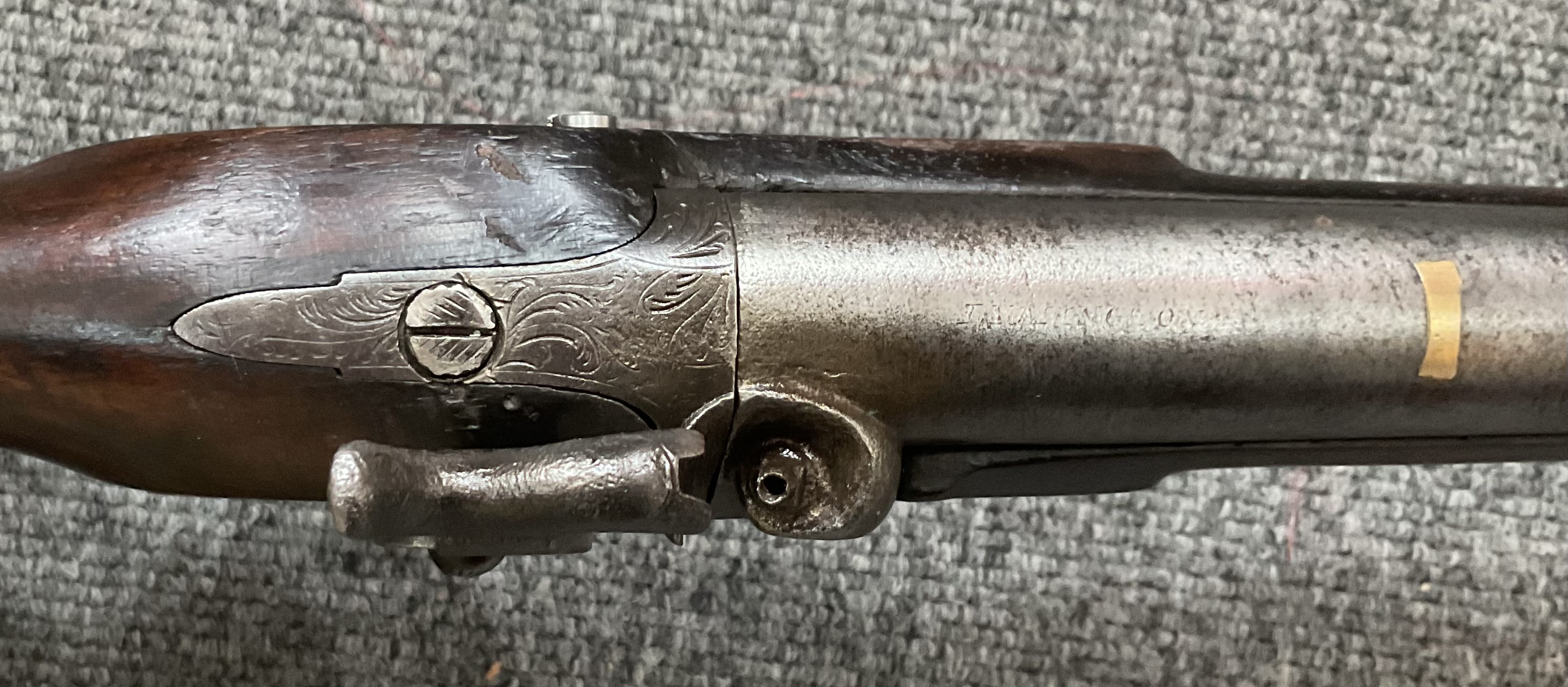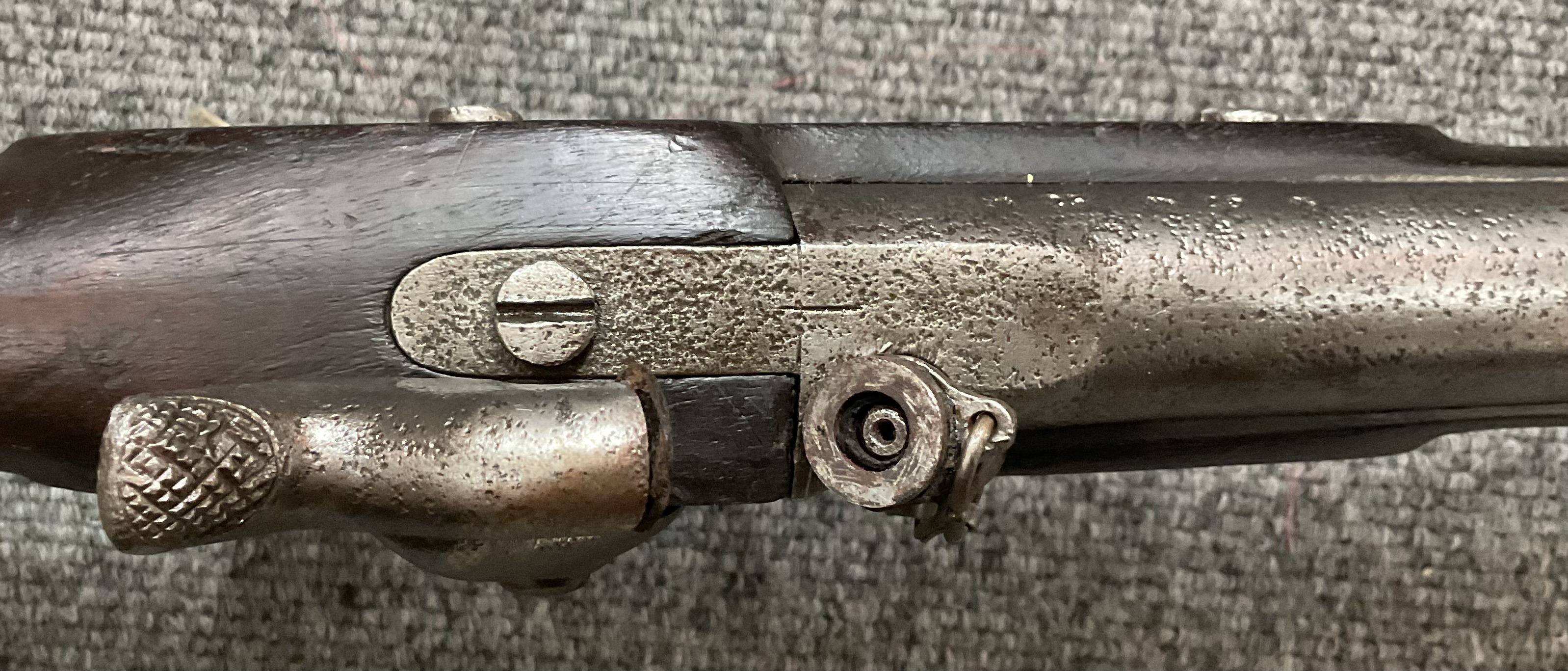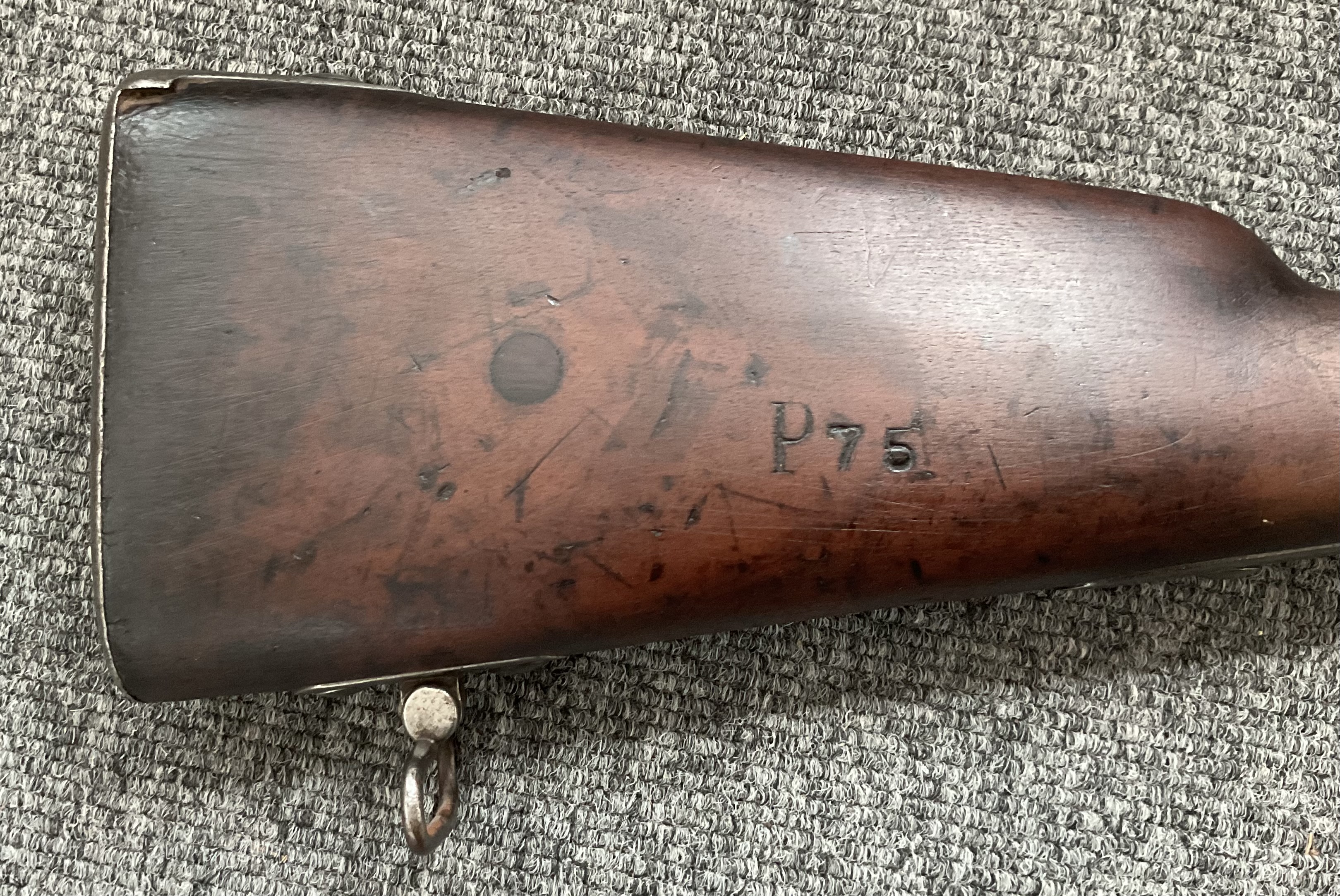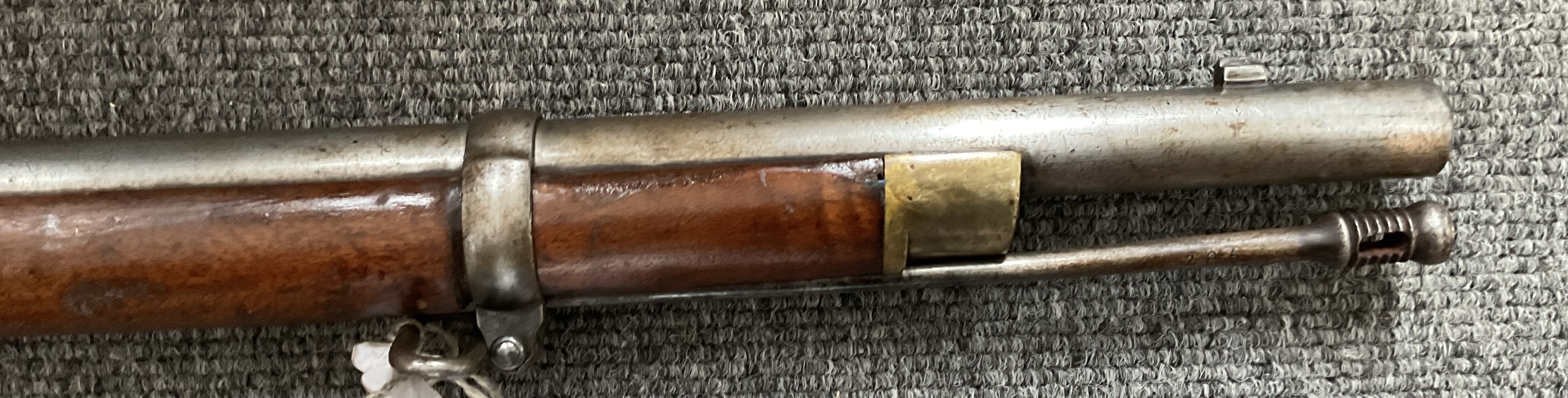 39-inch smooth bored barrel. Lock engraved with crown over VR and 1857