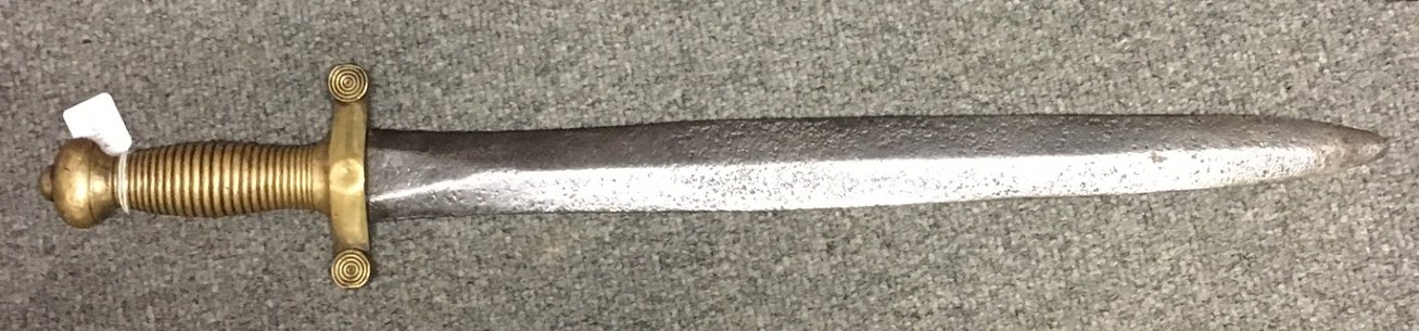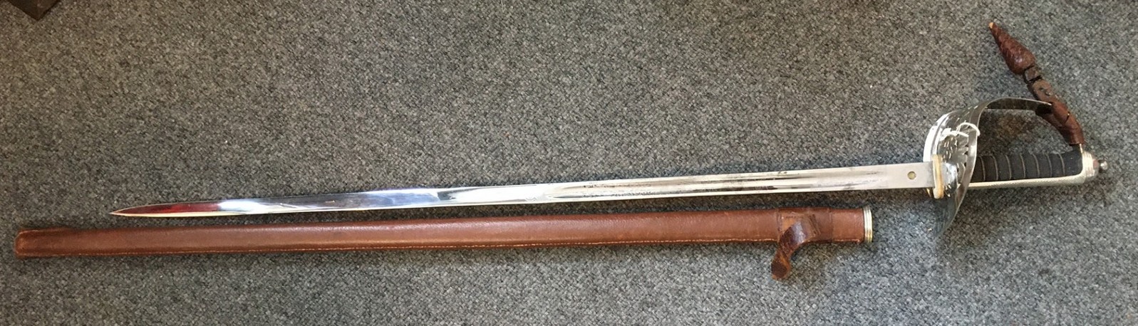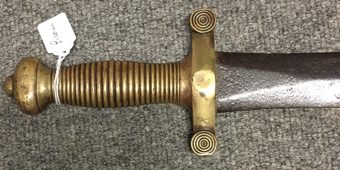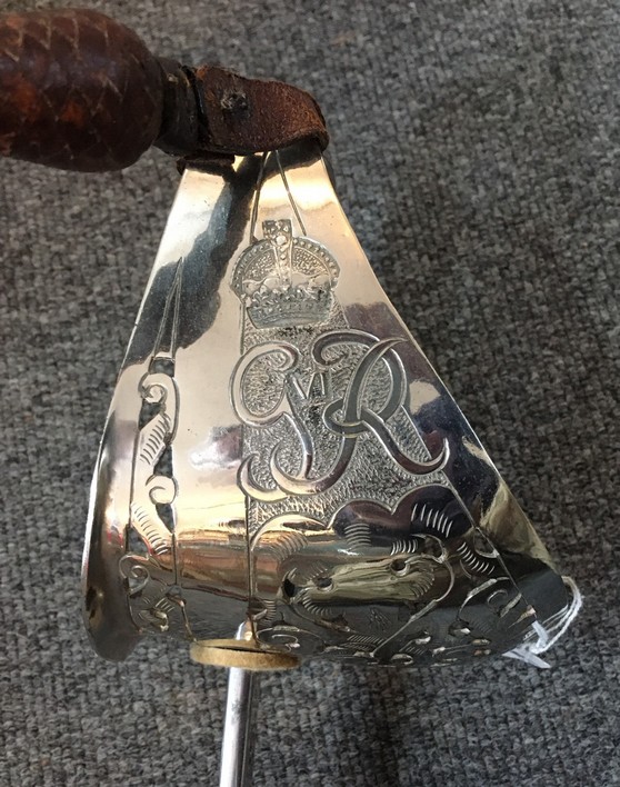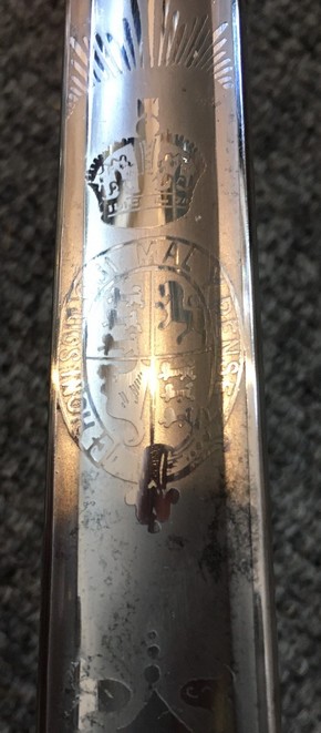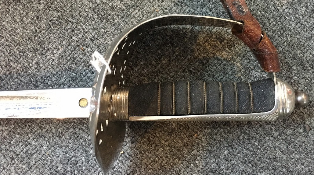 Please note: Due to restrictions we can no longer send any bladed item internationally. PLEASE NOTE: DUE TO BT CHANGING US OVER TO FIBRE OUR OLD EMAIL ADDRESS IS NOW INVALID OUR NEW EMAIL IS qcmilitaria1@outlook.com SWORDS AND SIDE-ARMS King George VI Royal Engineers Officer's Sword £300 1897 pattern sword. GIVR cypher on guard, ROYAL ENGINEERS on blade. No manufacturer or retailer on blade. ![]() ![]() ![]() ![]() ![]() Morrocan style Sword £175 Blade appears to be an older one that has been re-used. With leather scabbard. Short bone handle, blade has some decoration and is 29 inches long and 1 1/2 inches wide at top. Scabbard has some loose leather edging. ![]() ![]() ![]() ![]() ![]() Coldstream Guards Master Tailor Presentation Sword £700 A sword presented to the Master Tailors of the 2nd Battalion Coldstream Guards. Their names are on the blade. WO2 Master Tailor S.P. Richards and WO2 Master Tailor L.J. Cooke. Blade is dated 1984.The 2nd Battalion was put into "suspended animation" in 1993. Sword in very good condition. ![]() ![]() ![]() ![]() ![]() ![]() ![]() French Engineers Sword £120 ![]() Wilkinson Sword - King George VI Court Sword with leather scabbard and knot. £275 In very nice condition. GVI cyphers on blade. ![]() ![]() ![]() ![]() ![]() Edward VII 1896 pattern Levee Sword with leather scabbard and knot. £200 EdVII cyphers on blade. ![]() ![]() ![]() ![]() 1897-pattern Indian Army Officer's Sword with leather scabbard and knot. £350 GRI cypher - Indian Army. Initials on blade - C.L.V.N. - Further research could identify an Indian Army officer with these initials. 1897-pattern Royal Engineer Officer's Sword with leather scabbard and knot. £300 GV cypher. Blade has some staining but details are clear. Sword belonged to Colonel A. Robertson, Royal Engineers. He served in WW1, being awarded a Croix de Guerre, and was commissioned, serving in Dunkirk in 1940 and becoming CO of Royal Engineers in Glasgow. Sword purchased from owner of his medals. Relic Honourable East India Company Sword (rare) SOLD 1822 pattern, pipe-back blade. Hilt damaged, folding guard missing. HEIC badge on hilt. Handle replaced. |